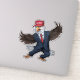 Muestra tu espíritu patriótico con este pegatina humorístico con un águila estadounidense vestida como Donald Trump. Con un traje y corbata afilados, con un gorra rojo característico llamado "Haz que Estados Unidos vuelva a ser grande", este pegatina es perfecto para agregar un toque político lúdico a tu laptop, botella de agua o auto.