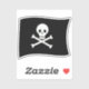 Agrega un toque pirata a tu fiesta con esta calcomanía cortada a medida con la bandera de un pirata. ¡Genial para sellar sobres, decorar favores de fiesta o como pequeño premio.