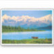 Wonder Lake, alce macho se alimenta de vegetación, montañas de Alaska en la distancia, Parque Nacional Denali, Alaska