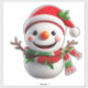 Un muñeco de nieve sonriente adornado con un festivo sombrero de Papá Noel rojo y una bufanda a rayas que evoca la alegría de las vacaciones y un ambiente de invierno alegre. Perfecto para Navidades y fiestas temáticas de temporada.