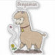 Esta bonita alpaca hace amigos con una mariposa rosa. Un personalizado feliz y adorable para el niño.