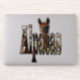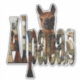 El nombre de Alpacas, hecho con imágenes invertidas de la Alpaca, y una Alpaca marrón detrás del nombre