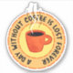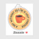 Funny pegatina de café con el texto A Day Without Coffee Is Lost Forever (Un día sin café se pierde para siempre) y una taza de café humeante con colores amarillo y naranja.