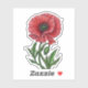 Hidrograma y ilustracion botánico pintado de una flor de amapola roja, acuarela y tinta sobre papel