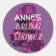 Elegante y único pegatina de ducha de novia con arte vectorial de amatista morado y fondo de color personalizado.
