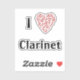 Muestra tu amor por la música y el clarinete con estas divertidas pegatinas de I Heart music. ¡Un regalo genial para profesores de música, músicos o estudiantes de música! El corazón está hecho de claves de sol, claves de fa y varias notas de ritmo musical en forma de corazón rojo. Mantén el texto como está o personalízalo para reflejar qué instrumento musical, grupo o conjunto amas.