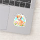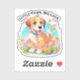Un pegatina con una foto de un cachorro adorable sentado entre las flores. Se ve muy feliz de estar rodeado de flores y mariposas. El regalo perfecto para dar a los que aman los perros perritos. Contiene contenido generativo.