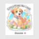 Un pegatina con una foto de un cachorro adorable sentado entre las flores. Se ve muy feliz de estar rodeado de flores y mariposas. El regalo perfecto para dar a los que aman los perros perritos. Contiene contenido generativo.
