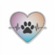 Forma cardíaca con una huella de pata en el centro. El corazón está bordeado por una línea de electrocardiograma (ECG), que indica un latido cardíaco. El gradiente de color del corazón pasa de morado en la parte superior a amarillo suave en la parte inferior. La huella de la pata está situada en el centro y la línea de ECG recorre horizontalmente el corazón, comenzando por la parte superior y terminando por la parte inferior.