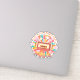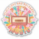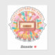 Grunge estilo retro ilustracion de música con diseño de texto "Peace love and rock & roll" y auriculares, cassette, flores, corazones y estrellas decoración arcoiris fondo de sol