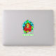 Bruja amarilla y verde con el pelo rojo sosteniendo el libro de Rótulos divinos sobre fondo azul - para Halloween - Añadir el nombre u otro texto que quieras - Celebrar Halloween con este gran Pegatina - puedes cambiar el tamaño del pegatina - 6 tamaños disponibles. - Ver mi tienda para muchos más grandes Pegatinas de Halloween, Configuración de mesa de Fiestas y más.