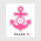 Pegatina Ancla rosa Monograma personalizado Vinilo náutico
