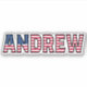 Eine sehr schöner personalisierter Sticker im USA Flagge Style für Andrew.