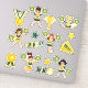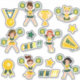 Encanta a tu hijo con este paquete de 15 pegatinas de animadores y sus premios, todos en tonos verdes y amarillos.