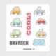 Personaliza a estos pegatinas de autos geniales y lindos con el nombre de tu elección y otras dos palabras. Este conjunto de pegatinas de vinilo incluye seis coches de colores y camiones con conductores animales.