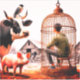 Este pegatina tiene animales de granja mirando a un niño en una jaula.