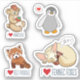 Esta es una colección pegatina de lindos animales personalizados: un hámster con fresa, un lindo pingüino con corazón, me encantan los pandas rojos y un dorso zorro fennec con el texto "Me encantan los zorros fennec". El zorro fennec duerme con un panda rojo. ¿No son lindos? ¡Disfrútalo! ♡