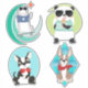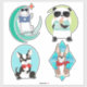 Una colección genial de animales hipster para pegarse en casi cualquier cosa, este conjunto de cuatro pegatinas incluye un oso en una patineta, un panda comiendo un cono de helado, un lindo territorio de pistón con corbata de arco rojo y un perro fresco con gafas de bandana roja alrededor de su cuello.