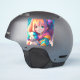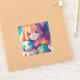 Hermoso chica de Anime con dos ojos de colores diferentes sosteniendo un adorable cachorro. Los colores utilizados son rosa, naranja, azul, violeta y azul. Ai art. generatvientent para niños, lindo y colorido