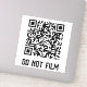Un escudo pegatina para aquellos que no quieren ser filmados o escaneados. El código QR actualmente conduce a un sitio web molesto, pero puede ser personalizado a cualquier sitio que desee. El texto también se puede personalizar. El diseño es el mismo en la parte delantera y trasera. Es probable que sea disuasivo contra cualquiera que quiera filmarte cuando prefiera que no lo haga, ya que no querrán arriesgarse a dañar su dispositivo señalándolo al QR. No se recomienda que utilice este pegatina para infringir ninguna ley.