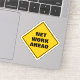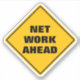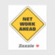 Funny clásica señal de advertencia de la carretera de diamantes amarillo advierte del trabajo de red por delante en un grueso tipo de letra sans serif negro, que es una señal de advertencia para el cartel de trabajo en carretera que vendrá a continuación.