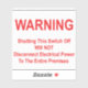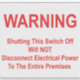 Un pegatina para electricistas que dice: "AVISAR APAGAR Este Interruptor NO Desconectará La Energía Eléctrica A Todas Las Instalaciones".