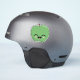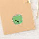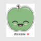Una adorable manzana verde kawaii con los ojos negros cerrados y una gran sonrisa feliz y mejillas rojas rosadas.