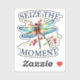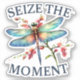 Este pegatina presenta una libélula colorida y la frase "Aprovecha el momento", lo que lo convierte en un regalo perfecto para amigos, familiares o uno mismo.