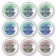 Árbol de Navidad decorado con pegatina de Navidad en verde azul y rojo festivo. Árbol de Navidad festivo decorado en un marco circular.
