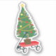 Navidades en un rollo... Diseño artístico Navidad. Un vagón rojo llevando un árbol de Navidad para un paseo. Un diseño ideal para Navidades y fiestas. Perfecto para decoraciones navideñas, ropa y regalos.