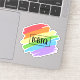 Esta obra de arte muestra un arcoiris colorido con las letras LGBTQ.