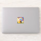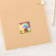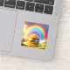 Este pegatina tiene un arco iris y un tesoro retratado en él.
