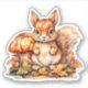 Un pegatina de otoño con chorros de agua, ardilla, champiñones y maíz