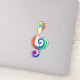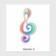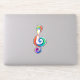 Tecla musical extraída de capas multicolores de colores arcoiris sobre fondo blanco.