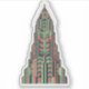 A bold, geometric sticker featuring a stylized Art Deco skyscraper in vibrant green, coral, and black. Perfect for adding a touch of vintage architectural flair to your laptop, water bottle, journal, or car. Made with durable, weather-resistant vinyl.
