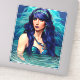 arte de pintura digital de fantasía original Reina Sirena Piscis cabello azul pegatina