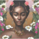 Arte de IA que representa a una preciosa mujer negra diosa con una corona de flores rosas en la cabeza. contenido generativo