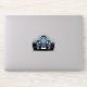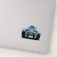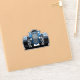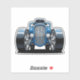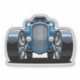Vista frontal hiperestilizada de Toon Hotrod con ruedas masivas, brillo azul eléctrico, parrilla audaz y postura baja y potente para un aspecto dinámico de coche de dibujos animados monstruo.