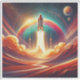 diseño de arte surrealista con colores vibrantes, que representa un lanzamiento de cohete al espacio. Perfecto para inspirar una sensación de asombro y exploración, este diseño combina el surrealismo audaz con elementos cósmicos imaginativos para crear una visión cautivadora y de ensueño.