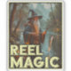 Esta imagen caprichosa muestra un mago parado al lado de un río en una zona boscosa, sosteniendo una barra de pesca con un pez flotando hacia la línea. Vestido con atuendo tradicional de mago, incluyendo una bata larga y un gorra puntiagudo, el mago lanza un hechizo mágico mientras pesca. El fondo, arbolado y montañoso, crea un ambiente místico y sereno. El texto "REEL MAGIC" que se muestra de forma destacada en la parte inferior de la imagen, añade un toque humorístico y mágico a la escena.