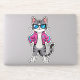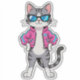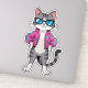 Un elegante gato personalizado golpea una pose segura en un mundo recreativo iluminado con neones. Con una chaqueta de bombardero rosa caliente y tonalidades azules frescas, este felino es la encarnación de la nostalgia de los años 80 y el estilo futurista. Con formas de píxel y vigas de neón brillando en el fondo, el gato irradia confianza pura y un pantano juguetón.