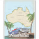 Australia mapea poster de viajes vintage con un hermoso auto clásico viejo.