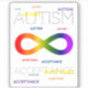 Diseño "Autismo Aceptancia" con el símbolo de infinito arcoiris.