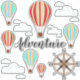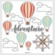 Globos de aire caliente y nubes esponjosas hojas de pegatina de aventura.