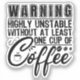 Pegatina Aviso Muy Inestable Funny Coffee Addict Guay