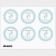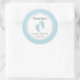 Pegatina redondo para la ducha de bebé con diseño de pies de bebé azul y fondo polkadot.