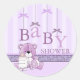 Este moderno Pegatina de personalizable con ducha para bebés cuenta con arcos morados. Personalizar añadiendo tus detalles en la letra de tu elección!