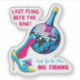 A disco ball with heels, lipstick, and a champagne bottle dancing — bold playful text: “Last Fling Before the Ring!”