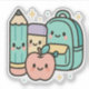 Brighten up the school year with this irresistibly cute design featuring smiling school supplies! A cheerful teal pencil, a purple-and-yellow eraser, a teal backpack, and a pink apple come to life with happy faces and rosy cheeks.