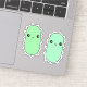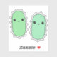 Pegatina con dos lindas bacterias de estilo kawaii E. coli (Escherichia coli) con muchos pili. Bacterias en dos tonos verdes
